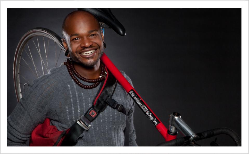 Everywhere he goes, Lawrence goes on his bike. He doesn’t just ride because it’s free, or to get exercise, or for the environment, though all those things are true, he rides because it allows him to be open to the space he’s in. “On a bicycle, you’re forced to notice and have compassion for others, you’re not isolated, like people in cars.” Because of that, he believes a riding community is a healthy community, literally and figuratively. There was a time in his life when Lawrence was homeless. “My bike was my best friend, my horse,” he remembers, “I’d sleep on it to keep my head off the ground. It got me somewhere, kept me from sitting still.” Now that he lives in San Francisco, he has a newer, faster bike, “I’m a changing person, I changed my community, so my bike had to change.”